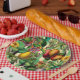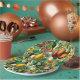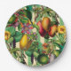 Der Retrostil von grünen Früchten und Blumengärten Pappteller