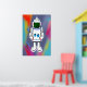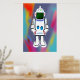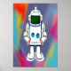 Ein weißer Roboter auf einem bunten Hintergrund. Das ist ein künstlerisches Kunstwerk, das von der KI generiert wurde.