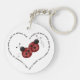 Der Schlüsselanhänger enthält zwei Ladybugs und das uralte Sprichwort: "Ein unsichtbarer roter Faden verbindet diejenigen, die bestimmt sind, sich zu treffen, unabhängig von Zeit, Ort oder Umständen. Der Faden mag sich ausdehnen oder verdrehen, aber nie brechen." - Das alte chinesische Sprichwort. Das Zitat ist in Form eines Herzens um die Ladybugs.
