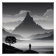 Vor der Weite betrachtet ein Reisender den Berg als Hüter des Himmels. In Schwarz-Weiß-Tönen offenbart die Szene Stille, Kraft und Introspektion, die Reflexion über die innere Reise und das Streben nach dem Unerreichbaren einlädt.