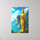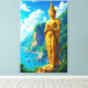 Entfesseln Sie den Geist Thailands mit diesem atemberaubenden Kunstwerk. Eine majestätische goldene Statue steht hoch auf einer Klippe und überblickt eine friedliche Küstenlinie mit Booten und gerahmt von üppigen tropischen Bergen. Dieses Bild verbindet die ruhige Spiritualität perfekt mit der atemberaubenden Schönheit der Natur. Es ist ein mächtiges und beruhigendes Stück, das jedem Raum eine Touch weltlicher Eleganz verleiht.