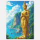 Entfesseln Sie den Geist Thailands mit diesem atemberaubenden Kunstwerk. Eine majestätische goldene Statue steht hoch auf einer Klippe und überblickt eine friedliche Küstenlinie mit Booten und gerahmt von üppigen tropischen Bergen. Dieses Bild verbindet die ruhige Spiritualität perfekt mit der atemberaubenden Schönheit der Natur. Es ist ein mächtiges und beruhigendes Stück, das jedem Raum eine Touch weltlicher Eleganz verleiht.