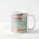 Dieses Design ist eine hübsche Tasse mit Strandkaffee und hübschen Ozeanwellen. "Peace and Serenity" ist in kursiver bordeauxfarbener Schrift mit dem Namen in der unteren rechten Ecke geschrieben. Bestelle noch heute!