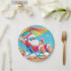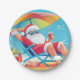 Der Santa Claus entspannt sich auf einem Sonnenbet Pappteller