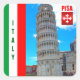 Der Schiefe Turm von Pisa ist eines der berühmtesten Bauwerke der Welt, eine große Sehenswürdigkeit und ein Wahrzeichen Italiens. Deshalb wird hier neben der italienischen Nationalflagge präsentiert: grün, weiß und rot und das Pisankreuz - das Wappen von Pisa.