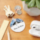 Originelles Kunstdesign einer Tuxedo Kätzchenkatze, die eine Bluebottle-Fliege von Designer Carolyn McFann von Two Purring Cats Studio betritt.