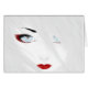 Schöner Original Anime Charakter mit frostigem Winterblick. Geisha rote Lippen und winterblaue Augen. Schnee personifiziert. Anime Snow Queen.