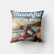 Ein zauberhafter Truthahn, der Erntedank am Strand genießt. Der Text sagt "Danke für den Strand"
