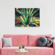 Diese Canvas-Printwerbung zeigt ein Originalfoto eines Schraubenkieferns von ZoeSPEAK. Die Blätter wachsen in einem Spiralbrunnen aus. Sie haben scharfe Kanten, und einer von ihnen, von Sonnenlicht und einer Brise erfasst, kurbelt zur Kamera, bereit anzugreifen, wenn wir zu nah werden.