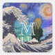 Der Schrei an der großen Welle starrt Nacht Quadratischer Aufkleber