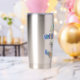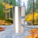 Der Schreibplatz ist ein schöner Platz, der eine s Thermobecher