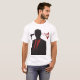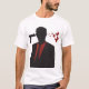 Der T - Shirt der hellblauen Männer, der grafischen Entwurf des Mannes geschossen wird im Kopf und in Blut sich wenden an Schmetterlinge kennzeichnet. Produkt von Arny L. Designs.