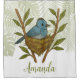Ein schwarzgefangener Monarch thront in seinem gemütlichen Nest inmitten von grünen Zweigen, umgeben von tropischem Blattwerk. Die ausführliche Abbildung zeigt die weichen blauen Federn des Vogels und die üppige Vegetation der Dschungelbäume Zuhause.