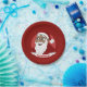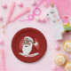 Papier Teller mit einer Illustration glücklich lächelnden afroamerikanischen Weihnachtsmann, mit bearbeitbaren Textvorlagen für Ihren Namen oder Ihre Nachricht, Weihnachtsfeiertagsgestaltung mit rotem Hintergrund