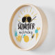 Mit dieser spielerischen und lebendigen Wanduhr "Summer is Coming" die Sonne drinnen bringen! Dieses Design mit coolen schwarzen Farbtönen, leckeren Eiscremes, Zitrusscheiben und Pop in Blau und Gelb besticht durch eine fröhliche Sonne. Egal, ob Sie Ihre Küche, Kinderzimmer, Büro oder Strandhaus dekorieren, diese Uhr verleiht jedem Raum einen saisonalen Charme. Diese Uhr ist aus einem eleganten Holzrahmen und einem hellen, weißen Hintergrund gefertigt und nicht nur funktionell, sondern auch ein Statement-Stück. Lass des kühnen Textes und farbenfrohe Leckereien erinnern daran, dass sonnige Tage und gute Stimmung immer um die Ecke sind! Perfekt für: Sommer Wohngestaltung Geschenk für Strandliebhaber Kinderzimmer oder Spielzimmer Dekoration Brighening up Küchen oder Büros Saisonale Wandkollektoren Features: Einzigartiges sommerliches Kunstwerk Hochauflösender Designprint Stille Quarzwerk (kein Ticken) Leicht und leicht zu hängen Anpassbare Hintergrund- und Handfarben verfügbar auf Zazzle Bereiten Sie sich auf Sonnenschein vor - denn der Sommer kommt!