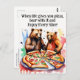 Der lustige Brunnen wünscht Postkartenbären eine riesige Pizza, denkt an euch, schickt Schläger und gute Wünsche, jubelt Postcard.