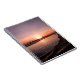 Der Sonnenuntergang am Strand ist dunkel, hell und Notizblock