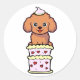 Der sonnige braune Hund springt aus einem Kuchen Runder Aufkleber