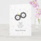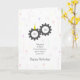 Eine lustige Illustration, die alle Typ als Zähne eines Zahnrads zeigt, während ein Zahn ein Party trägt, das zeigt, dass es sein Geburtstag ist. Eine perfekte Karte für jemanden, der am 15. April, dem Steuertag, Geburtstag hat.