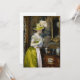 Der Spiegel (1889) von Gunnar Berndtson ist eine faszinierende Darstellung der Selbstreflexion, sowohl wörtlich als auch bildlich. Das Gemälde zeigt eine Frau in einem lebendigen grünen Kleid und Hut, die gedanklich in einen Spiegel schauen. Ihr gepochter, aber introspektiver Ausdruck lädt den Betrachter dazu ein, ihre Gedanken zu betrachten, während sie sich selbst beobachtet. Die farbenfrohe Farbpalette, vor allem das lebhafte Grün ihrer Kleidung, kontrastiert wunderbar mit den sanfteren Farben des Raumes und der reflektierenden Oberfläche. Berndtsons Gebrauch von Licht und Schatten steigert die Atmosphäre des Stückes und schafft ein zartes Gleichgewicht zwischen der inneren Welt des Subjekts und ihrem äußeren Erscheinungsbild. Verwenden Sie die Entwurfstools, um einen benutzerdefinierten Text hinzuzufügen oder das Bild zu personalisieren.