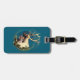 Ein Gemälde eines Bullenelchs mit einem Kuhelch in einem blauen Kreis, der von einem mit grünen Blätter bedeckten Baumzweig gerahmt ist. Image Copyright ©2022 Kimberly J Tilley. zazzle.com/store/kimberlyjt