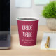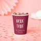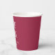 Vergnügen Sie sich bei Ihrem Hochzeitsfest mit diesen schlichten, weinroten Papiertassen, dem Bachelorette-Junggeselinnen-Abschied und dem Party, das in weißer, stilisierter Schrift gedruckt wird. Bearbeiten und ersetzen Sie bachelorette Name und Veranstaltungsdatum mit Ihrem eigenen.