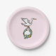Der Storch trägt ein Baby-Mädchen Pappteller