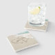 Der Strand ist auf Sand mit Namen. Steinuntersetzer