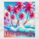 Auf diesem Weinetikett steht "The Beach" mit einer Palmenlandschaft und dem darauf abgebildeten Ozean.