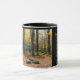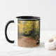 Tasse - Gedicht durch Robert- Frost und Landschaftsszene von zwei Straßen, die in einem Herbst, gelbes Holz auseinander laufen.