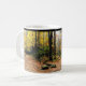 Tasse - Gedicht durch Robert- Frost und Landschaftsszene von zwei Straßen, die in einem Herbst, gelbes Holz auseinander laufen.
