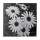 Dieses Bild zeigt eine Reihe von Gänseblüten mit weißen Blütenblättern und markanten lila-blauen Zentren. Hintergrund und Blattwerk sind in Schwarz und Weiß gehalten, wodurch ein selektiver Farbeffekt entsteht, der die lebhaften Farbtöne der Blume unterstreicht. Der Kontrast zwischen der entsalzten Umgebung und den zarten Blüten verleiht dem Bild eine künstlerische, fast surreale Qualität, die die Schönheit und Komplexität der Natur unterstreicht.