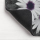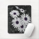 Dieses Bild zeigt eine Reihe von Gänseblüten mit weißen Blütenblättern und markanten lila-blauen Zentren. Hintergrund und Blattwerk sind in Schwarz und Weiß gehalten, wodurch ein selektiver Farbeffekt entsteht, der die lebhaften Farbtöne der Blume unterstreicht. Der Kontrast zwischen der entsalzten Umgebung und den zarten Blüten verleiht dem Bild eine künstlerische, fast surreale Qualität, die die Schönheit und Komplexität der Natur unterstreicht.