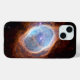 Der Südring-Nebel in fast infrarotem Licht, aufgenommen vom James Webb Space Teleskop. Diese Szene wurde von einem weißen Zwergstern geschaffen - den Überresten eines Sterns wie unserer Sonne, nachdem er seine äußeren Schichten vergossen und durch nukleare Fusion den Brennstoff aufgegeben hatte. Diese äußeren Schichten bilden nun die ausgeworfenen Muscheln entlang dieser Sichtweise. In diesem NIRCam-Bild erscheint der weiße Zwerg im unteren links des hellen Zentralsterns, der teilweise durch einen Beugungsstrahl verdeckt wird. Der gleiche Stern erscheint - aber heller, größer und röter - im Mid-Infrared Instrument (MIRI) Bild. Dieser weiße Zwergstern ist in dicken Staubschichten eingeklemmt, die ihn größer erscheinen lassen. Über Tausende von Jahren und bevor es zu einem weißen Zwerg wurde, warf der Stern regelmäßig Masse aus - die sichtbaren Muscheln von Material. Wie bei einer Wiederholung schrumpfte es, erhitzte sich - und schaffte es dann nicht mehr, mehr Material auszustoßen, pulsierte. Stellar Material wurde in alle Richtungen geschickt und lieferte die Zutaten für diese asymmetrische Landschaft. Heute heizt der weiße Zwerg das Gas in den inneren Regionen auf - die rechts verlassen blau und rechts rot erscheinen. Beide Sterne leuchten die äußeren Bereiche auf, jeweils in orange bzw. blau. Peer an der kreisförmigen Region in der Mitte und Sie sehen einen wackeligen, asymmetrischen Gürtel aus Material. Hier treffen sich zwei Schüsseln, aus denen sich der Nebel zusammensetzt. (In dieser Ansicht befindet sich der Nebel in einem 40-Grad-Winkel.)