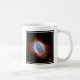 Der Südring-Nebel in fast infrarotem Licht, aufgenommen vom James Webb Space Teleskop. Diese Szene wurde von einem weißen Zwergstern geschaffen - den Überresten eines Sterns wie unserer Sonne, nachdem er seine äußeren Schichten vergossen und durch nukleare Fusion den Brennstoff aufgegeben hatte. Diese äußeren Schichten bilden nun die ausgeworfenen Muscheln entlang dieser Sichtweise. In diesem NIRCam-Bild erscheint der weiße Zwerg im unteren links des hellen Zentralsterns, der teilweise durch einen Beugungsstrahl verdeckt wird. Der gleiche Stern erscheint - aber heller, größer und röter - im Mid-Infrared Instrument (MIRI) Bild. Dieser weiße Zwergstern ist in dicken Staubschichten eingeklemmt, die ihn größer erscheinen lassen. Über Tausende von Jahren und bevor es zu einem weißen Zwerg wurde, warf der Stern regelmäßig Masse aus - die sichtbaren Muscheln von Material. Wie bei einer Wiederholung schrumpfte es, erhitzte sich - und schaffte es dann nicht mehr, mehr Material auszustoßen, pulsierte. Stellar Material wurde in alle Richtungen geschickt und lieferte die Zutaten für diese asymmetrische Landschaft. Heute heizt der weiße Zwerg das Gas in den inneren Regionen auf - die rechts verlassen blau und rechts rot erscheinen. Beide Sterne leuchten die äußeren Bereiche auf, jeweils in orange bzw. blau. Peer an der kreisförmigen Region in der Mitte und Sie sehen einen wackeligen, asymmetrischen Gürtel aus Material. Hier treffen sich zwei Schüsseln, aus denen sich der Nebel zusammensetzt. (In dieser Ansicht befindet sich der Nebel in einem 40-Grad-Winkel.)