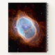 Der Südring-Nebel in fast infrarotem Licht, aufgenommen vom James Webb Space Teleskop. Diese Szene wurde von einem weißen Zwergstern geschaffen - den Überresten eines Sterns wie unserer Sonne, nachdem er seine äußeren Schichten vergossen und durch nukleare Fusion den Brennstoff aufgegeben hatte. Diese äußeren Schichten bilden nun die ausgeworfenen Muscheln entlang dieser Sichtweise. In diesem NIRCam-Bild erscheint der weiße Zwerg im unteren links des hellen Zentralsterns, der teilweise durch einen Beugungsstrahl verdeckt wird. Der gleiche Stern erscheint - aber heller, größer und röter - im Mid-Infrared Instrument (MIRI) Bild. Dieser weiße Zwergstern ist in dicken Staubschichten eingeklemmt, die ihn größer erscheinen lassen. Über Tausende von Jahren und bevor es zu einem weißen Zwerg wurde, warf der Stern regelmäßig Masse aus - die sichtbaren Muscheln von Material. Wie bei einer Wiederholung schrumpfte es, erhitzte sich - und schaffte es dann nicht mehr, mehr Material auszustoßen, pulsierte. Stellar Material wurde in alle Richtungen geschickt und lieferte die Zutaten für diese asymmetrische Landschaft. Heute heizt der weiße Zwerg das Gas in den inneren Regionen auf - die rechts verlassen blau und rechts rot erscheinen. Beide Sterne leuchten die äußeren Bereiche auf, jeweils in orange bzw. blau. Peer an der kreisförmigen Region in der Mitte und Sie sehen einen wackeligen, asymmetrischen Gürtel aus Material. Hier treffen sich zwei Schüsseln, aus denen sich der Nebel zusammensetzt. (In dieser Ansicht befindet sich der Nebel in einem 40-Grad-Winkel.)