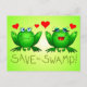 Niedliche Cartoon Frösche mit roten Herzen, Gradienten grün / gelb verblassen Hintergrund. Feuchtgebiete wie Sümpfe, Moore, Sümpfe und Sümpfe sind für eine gesunde Umwelt lebenswichtig. Ein Teil der Erlöse aus jedem "Rett den Sumpf!" Das Produkt zielt auf die Bildung der Umwelt und den Schutz von Feuchtgebieten ab. Bitte besuchen Sie http://www.happywishingwell.com/save-the-swamp.html für weitere Informationen und haben Sie einen hoppy Day!