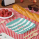 Die quadratischen Teller des Surfclubs sind ideal für Ihre Party am Strand... Türkisfarbene Cabana-Streifen mit rotem, individuellem Surfclub-Wappen. Personalisieren Sie die Details Ihrer Surf-Ansammlung oder Ihres Clubs.. Jahr und Ziel. Ideal für einen Klub, eine Familie oder eine Gruppe von Freunden surfen Party oder surfen Thema Ansammlung. Matching Accessoires in der Surf Club Cabana Stripe Kollektion.