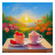 Dieses Gemälde fängt einen friedlichen und gemütlichen Nachmittag mit den süßen Momenten der Nachmittagszeit 🍓 🍰 ☕ ein. In der Ferne gibt es einen klaren, blauen Himmel, eine hell leuchtende Sonne und sanft gefärbte Berge. In der Nähe blühen lebendige rosa und rote Blume, sodass Sie die Schönheit der Natur spüren können. Auf dem Holztisch sorgen ein Erdbeerkuchen und eine Erdbeerlatte mit weichem rosa Peitschencreme für eine perfekte Kulisse, die den Augenblick noch angenehmer macht. Die Szene fühlt sich an, als ob sie den süßesten und entspannendsten Moment des Tages zeigt. Alles verbindet sich in Ruhe und Komfort, und jedes Mal, wenn Sie dieses Gemälde betrachten, werden Sie Glück und Ruhe spüren. Die hellen und warmen Farben des Gemäldes heben die Stimmung des Betrachters hervor, sodass sie sich noch besser fühlen. Durch dieses Kunstwerk hoffe ich, dass viele Menschen eine Pause von ihrem geschäftigen Leben nehmen, einen Moment der Entspannung finden und eine Zeit der Heilung erleben können. Es ist mein Wunsch, dass etwas Glück und Frieden in Ihr Leben aufgenommen werden. 🙏 ❤️