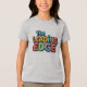 Die digitale Illustration des "Leading Edge"-T - Shirt zeichnet sich durch eine spielerische, lebendige Typografie aus, die ein positives Ambiente einnimmt und die Vorstellung unterstreicht, an der Spitze von Innovation und Kreativität zu stehen. Die Vorderseite zeigt den Begriff "Leading Edge" in fett, bunten Buchstaben, während die Rückseite das Wort "Forefront" anbietet, das dynamische Designs beinhaltet, die ein Gefühl von Bewegung und Inspiration wecken.