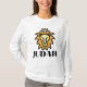 Der lange Ärmel dieser Frauen hat ein Design, das das Wort "Judah" in einem fett gedruckten Schriftart mit schwarzen Buchstaben zeigt, die ein Bild eines Löwenköpfs im Cartoon mit der Königskrone in der Mitte in diesem religiösen Zitat-Thema zeigen. Dieser Tee ist bequem, lässig und locker, aus 6,0 oz, 100% Baumwolle vorschrumpfend, mit doppelnadelgeheftetem Boden und Ärmelhemen für extra Haltbarkeit, passen und tragen unsere T-Shirts gut auf allen und allen.