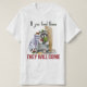 Der T - Shirt der Raccoon-Abfall-Bandit-Männer mit Illustrationsentwurfsbild der grafischen Kunst eines entzückenden Raccoon, der Äpfel sammelt und isst und die verschiedenen Nahrungsmitteleinzelteile aus offener Abfalldose mit Textwortausdruck heraus zitieren "wenn Sie sie füttern, die sie kommen!"