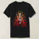 Geier Kulture® T - Shirt, der "Skate-Tod", Tod selbst kennzeichnet, da ein Skelett Skaten in einem Flammenvorhang mit einem Piratenentwurf Skateboard ist.  Dieser Entwurf basiert auf "Skate-Tod", die Platte, die von Dan Statler für Monster-Garage hergestellt wird. Geier Kulture (Metallkunst mit einem Rand) ist- eine Metallkunst-, -entwurfs-, -photographie- und -Videofirma, die von Dan Statler geschaffen wird.