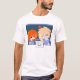Ein Shirt mit einem Comic-Look, in dem Ihre Lieblingsfiguren von Wingz: Cara & Kyle aufgeführt sind. Cara das Mädchen mit roten Haaren und Kyle den Jungen mit blonden Haaren. Wenn Sie Kyle kennen, dann wissen Sie, dass er seine Brille nicht gerne trägt, was dazu führt, dass er in Sachen läuft. Cara ist derjenige, der ihm immer sagt, seine Brille zu tragen, aber weil Kyle stur ist, tut er es nicht.