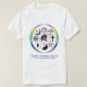 Der T - Shirt des Mannes mit dem pazifischen Logo der unitarischen Kirche umgeben durch Regenbogenkreis und 8 bedeutende religiöse Symbole um von der Welt.