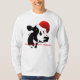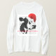 Gezeigt in den langen Hülsen und im Weiß, hat dieses Shirt für die Männer, die durch amerikanisches Kleid gemacht werden, ein großes Schwarzes u. ist weiße Kuhgraphik mit einer niedlichen roten u. weißen Weihnachtsmannmütze, die auf ihr gehockt wird, zusammen mit Text "haben ein Mmmarvelous Weihnachten" Haupt. Fertigen Sie besonders an oder kaufen Sie, wie ist.