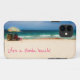 Es ist ein heller, sonniger Tag am Jupiter Beach. Der Himmel ist tief blau, die Brise bläst und die blauen grünen Ozeanwellen mit ihren frostigen weißen Spitzen rollen sanft hinein. Zwei Personen sitzen im minimalen Schatten eines gelben Sonnenschirms im goldenen Sand, um die Florida Beach Szene von ZoeSPEAK auf diesem iPhone 11 Case. Es gibt einen Text, der lautet: "Das Leben ist ein Strand in Florida!". Dies ist ein Set für Sie, um zu personalisieren oder zu löschen, wenn Sie es vorziehen.
