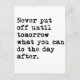 Verschiebe nie auf morgen, was du am Tag danach machen kannst.