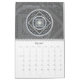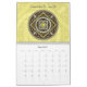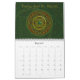 Jede Seite dieses Kalenders kennzeichnet eine themenorientierte Mandala des Tierkreises mit den verschiedenen Edelsteinen, die durch das Symbol für das Zeichen, die Konstellation und das alchemical Symbol für das Element unter mit Filigran geschmücktem umgeben werden und spinnt.