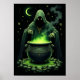 Eine schattige Figur, die in einem smaragdgrünen Gewölbe verkleidet ist, steht vor einem Kessel, der mit einem leuchtenden, grünen Tank sprudelt. Das Gesicht der Figur ist im Schatten verborgen, aber ihre Hände, mit verziertem Schmuck geschmückt, reichen in Richtung Kessel und bewegen den Inhalt scheinbar. Der Hintergrund ist eine dunkle, sternenförmige Nacht mit einem Halbmond, der über der Decke hängt. Die Sterne blinken mit einem blass, grünen Licht, das dem Glanz des Tränens entspricht. Die Szene ist voller Geheimnisse und Intrigen, die den Power und die Magie im Kessel andeuten.
